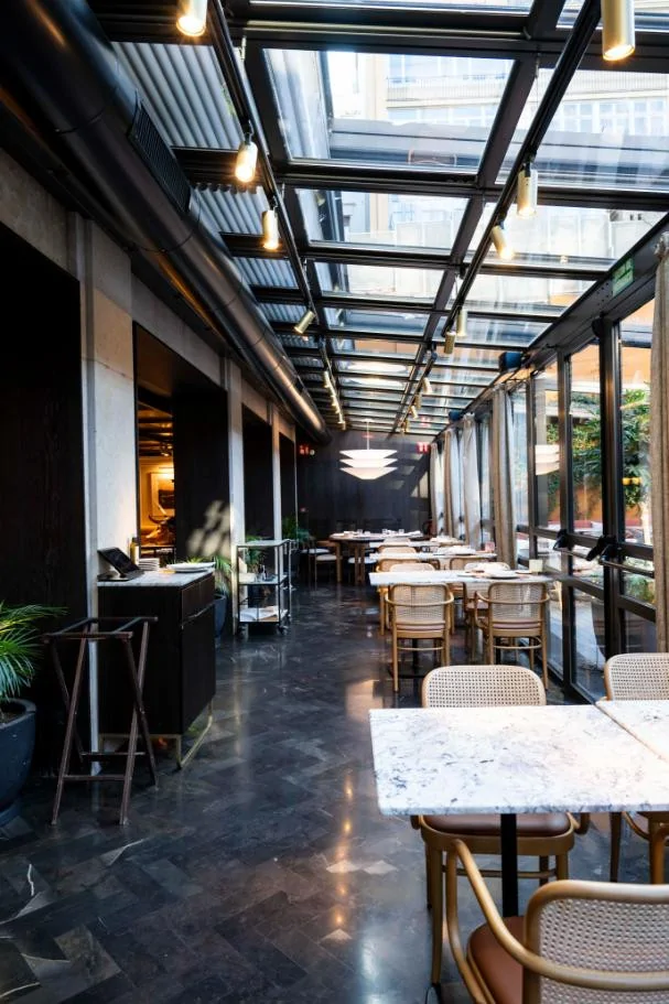 Nuestra terraza ajardinada es un oasis secreto en el corazón de la ciudad, ideal para disfrutar de un desayuno saludable o una selección de platos a cualquier hora del día.